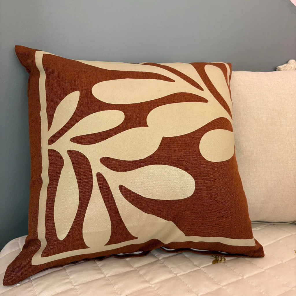 Traga leveza e sofisticação para sua decoração com esta capa de almofada em linho pintado, apresentando uma delicada folha na cor caramelo. A textura natural do linho combinada ao desenho suave cria um visual neutro, harmonioso e cheio de charme — perfeito para quem ama composições elegantes e atemporais.