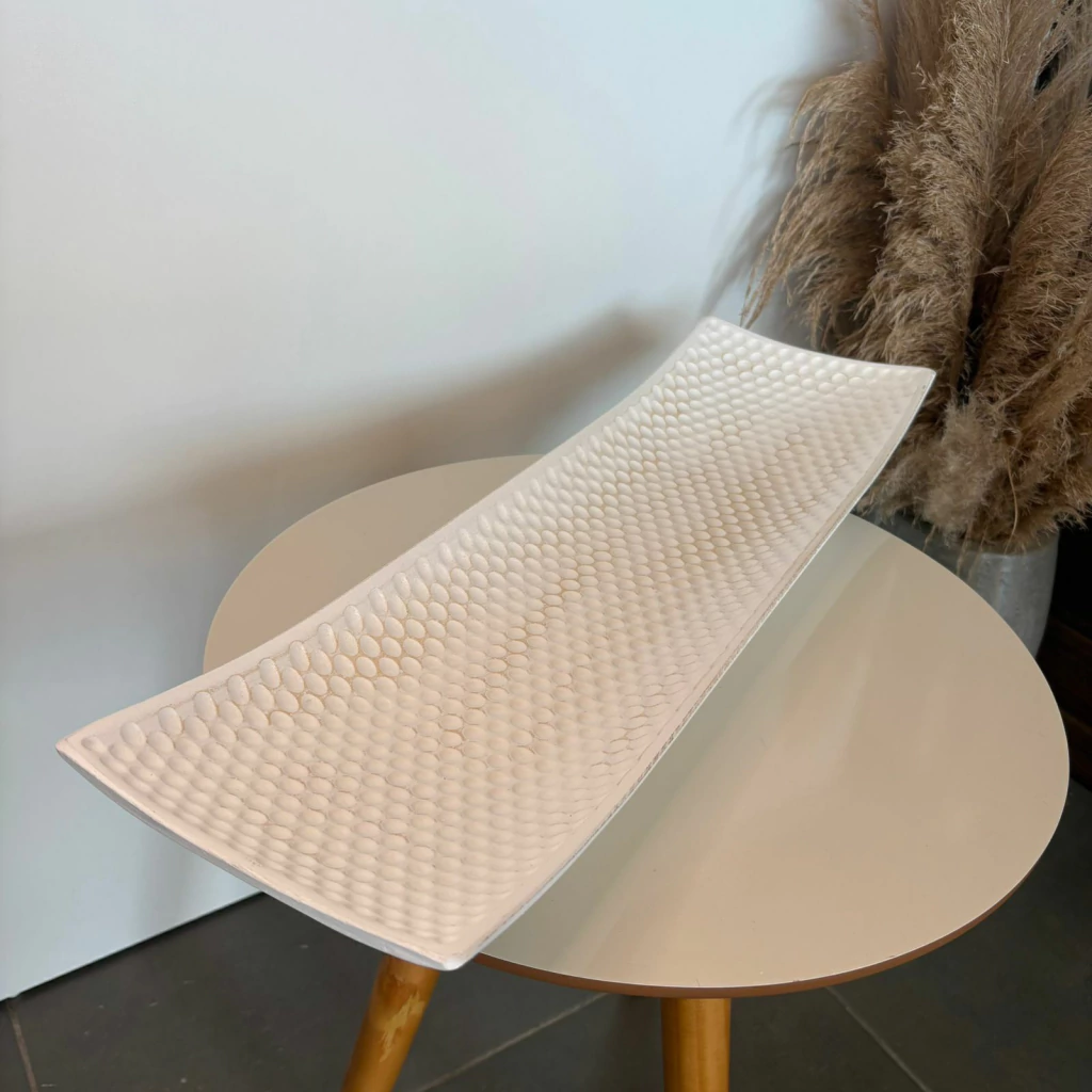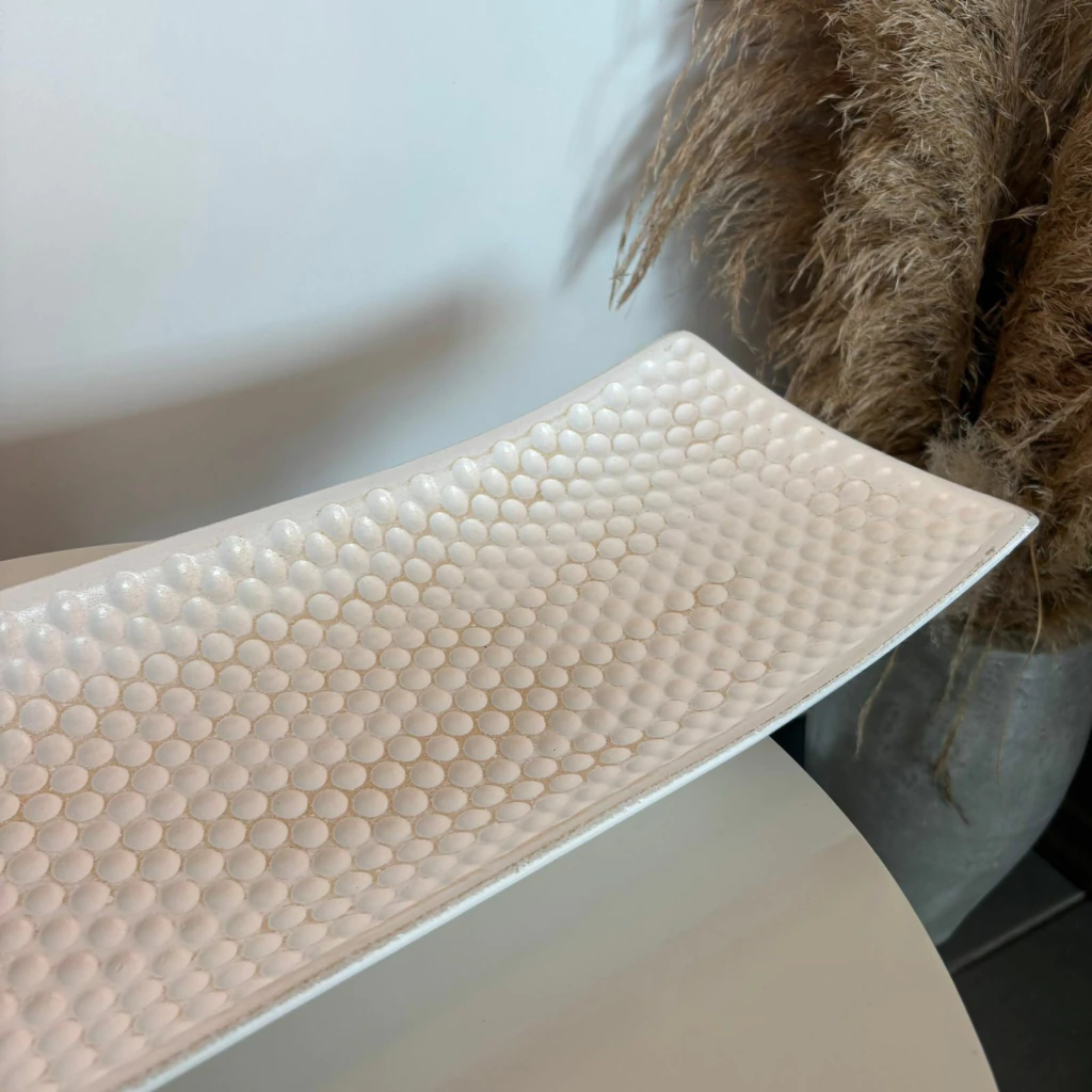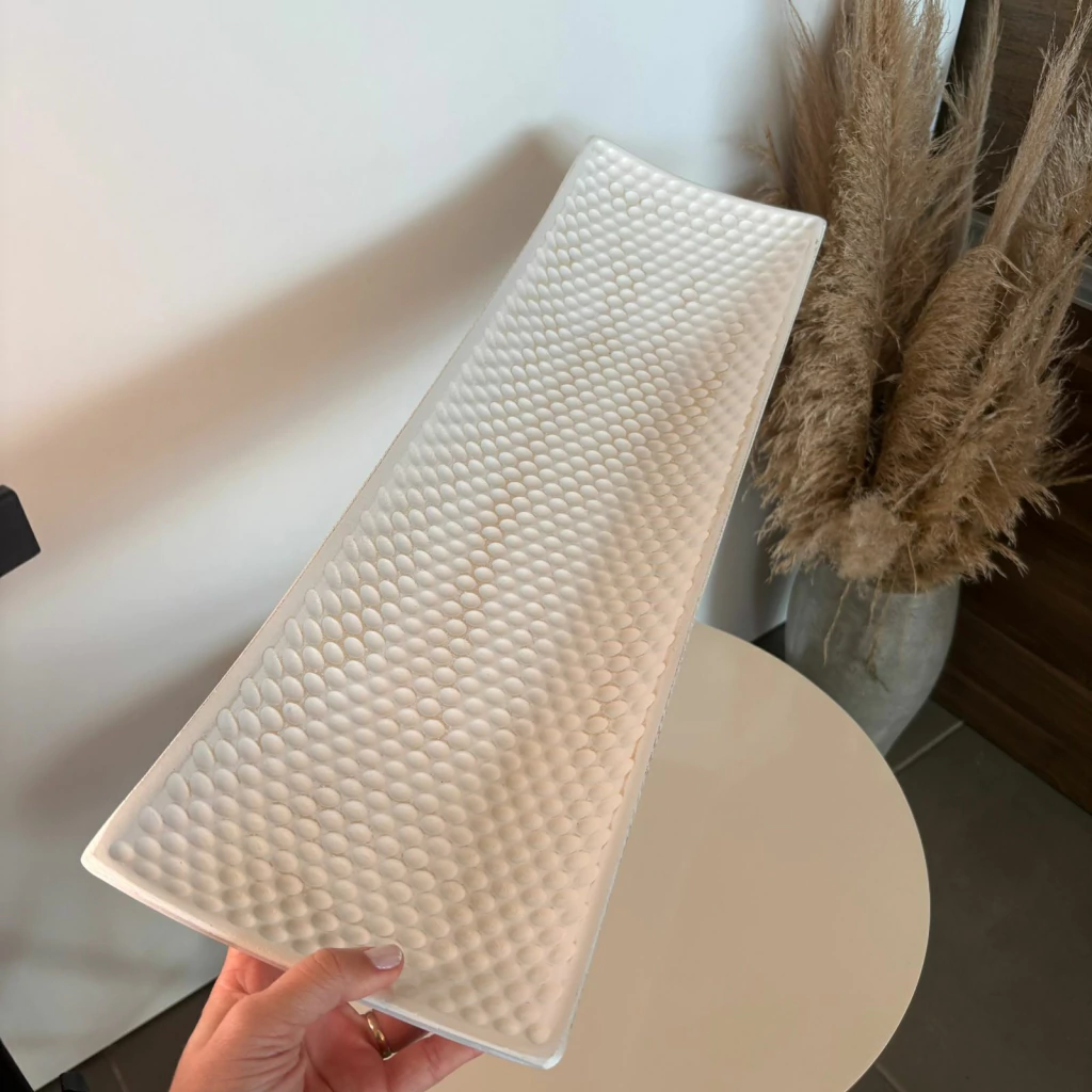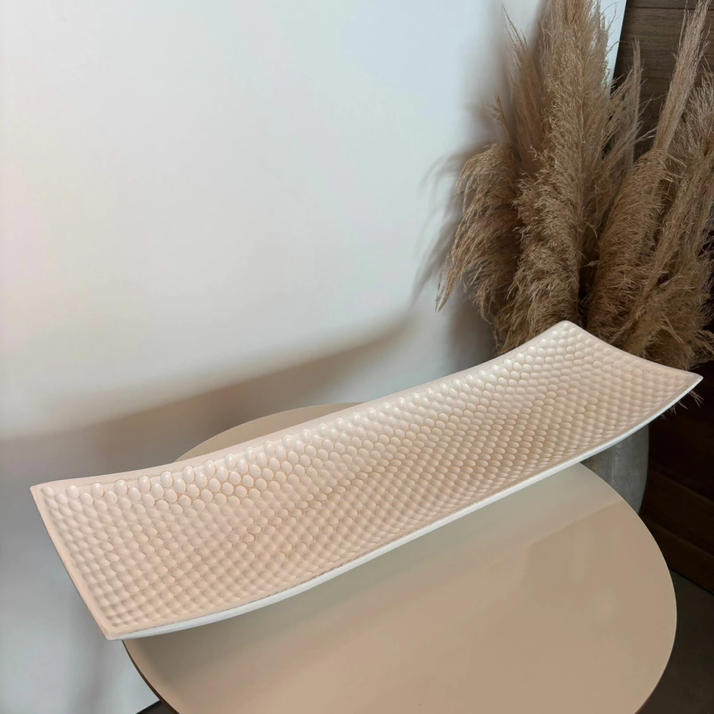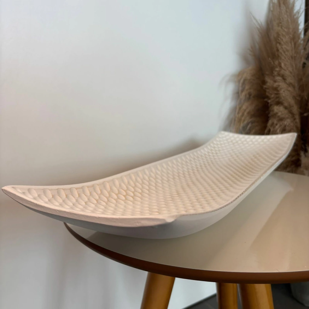 O Centro de Mesa em madeira na cor branca, com formato retangular e linhas simples, é uma peça que combina funcionalidade e estilo minimalista. Com 61cm de comprimento, ele é ideal para valorizar mesas de jantar, aparadores ou ilhas de cozinha, servindo como base para arranjos, velas, livros decorativos, vasos ou adornos.