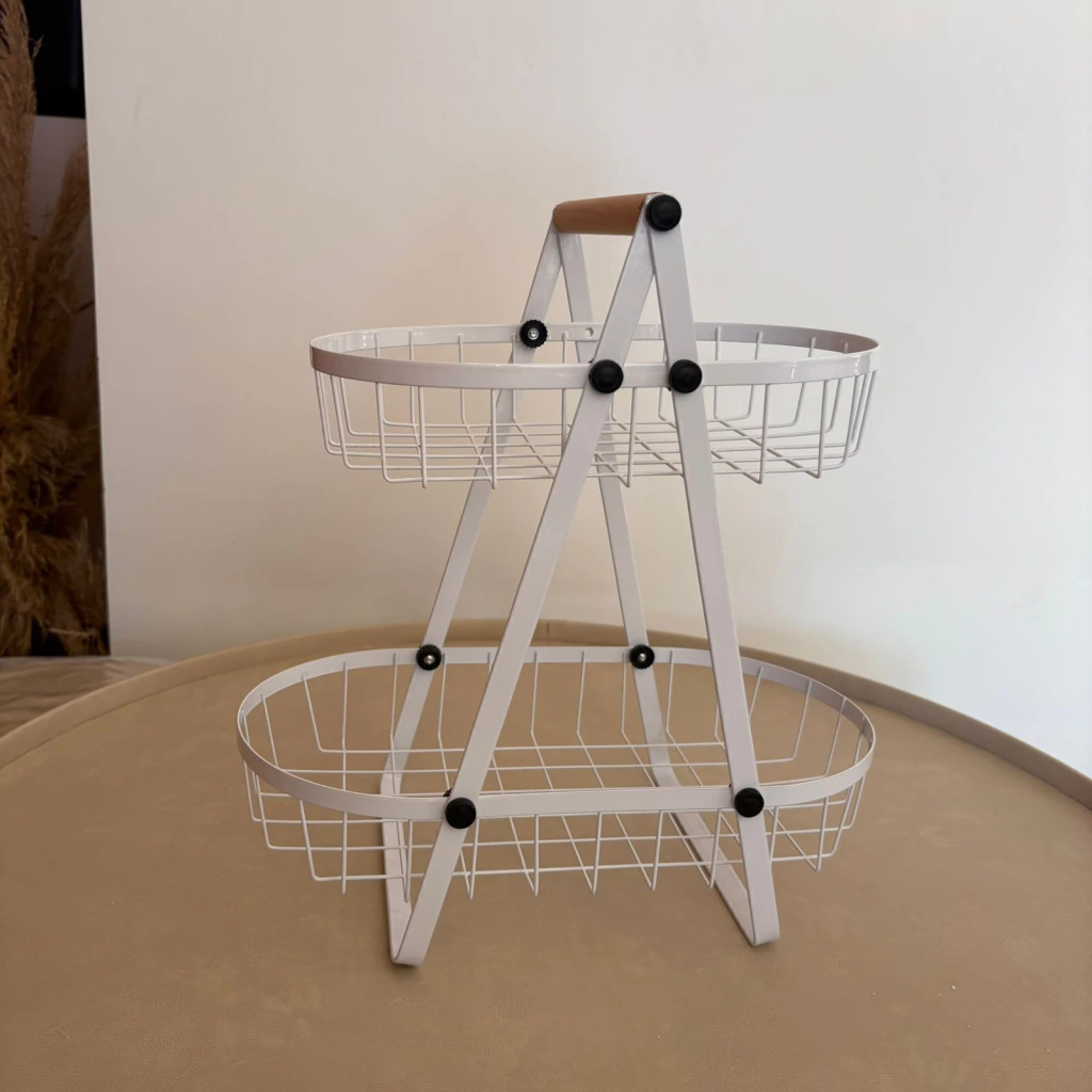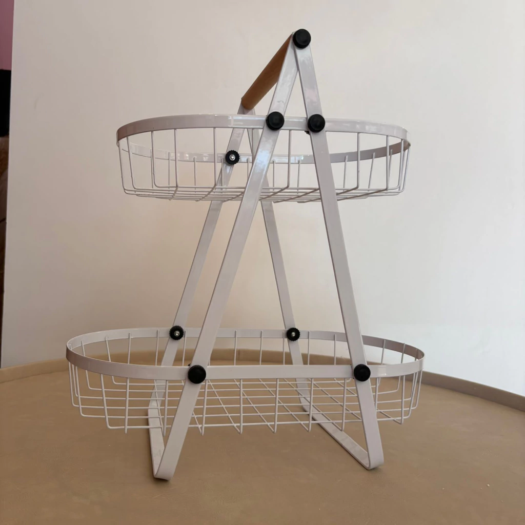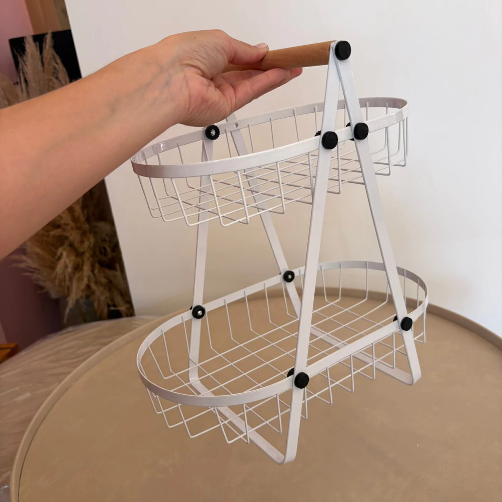 Os dois andares oferecem mais espaço para armazenar frutas, legumes ou outros itens de maneira organizada e visualmente atraente. Compacta e versátil, é ideal para otimizar o espaço na sua cozinha ou área gourmet.