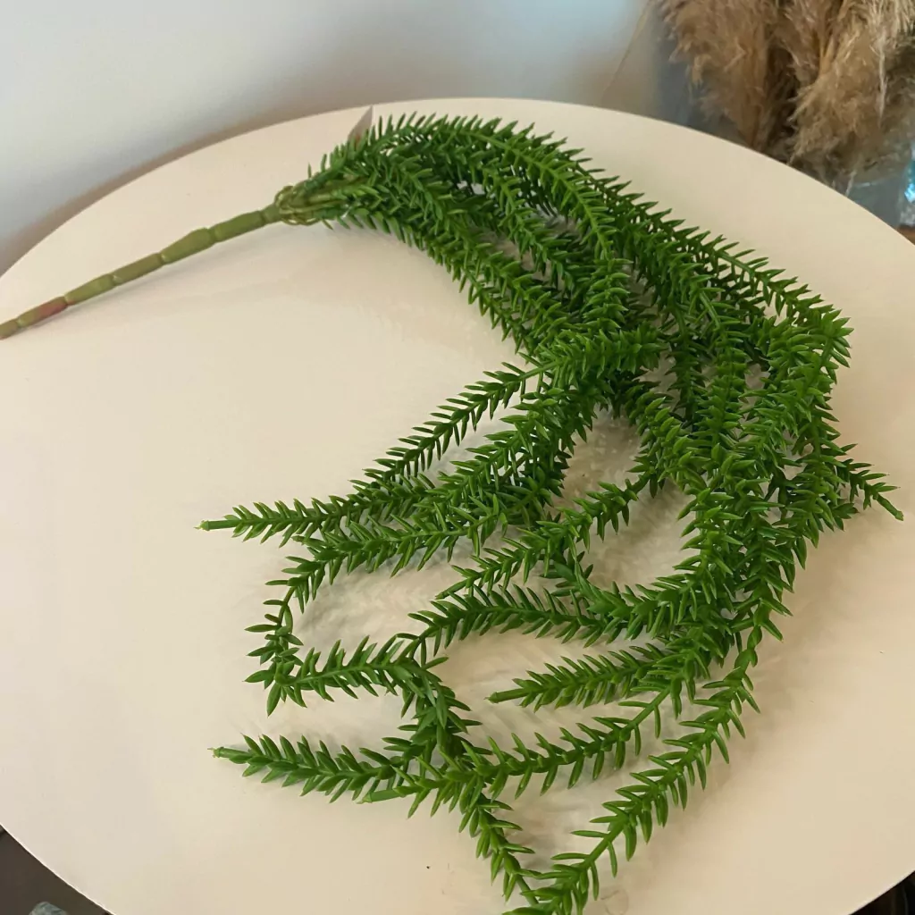 Traga o verde para sua decoração com praticidade e beleza usando o pendente artificial “Rabo de Macaco”. Com visual realista e acabamento delicado, é perfeito para dar um toque natural a ambientes internos sem a necessidade de manutenção.