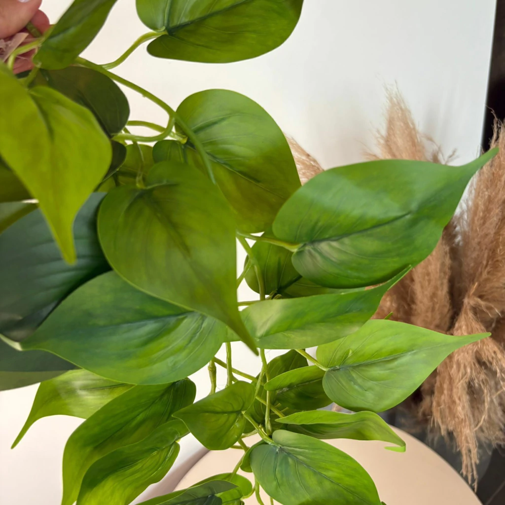A Jiboia artificial realista é a escolha ideal para quem deseja trazer o charme da natureza para a decoração sem abrir mão da praticidade. Com 68 cm de comprimento, essa folhagem pendente reproduz com fidelidade os tons e texturas da planta natural, conferindo um visual elegante e autêntico ao ambiente.