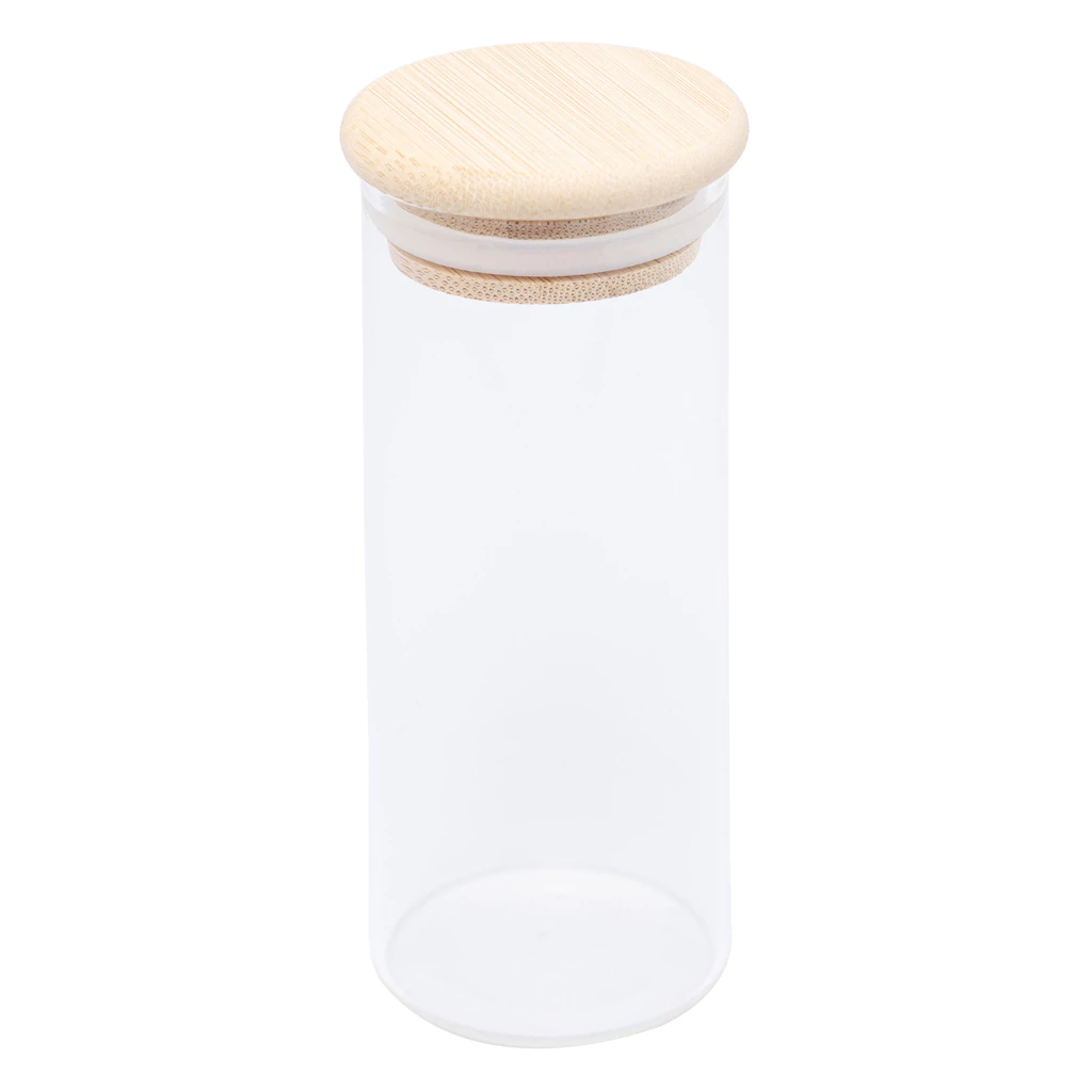 Design sofisticado que combina vidro transparente e tampa de bambu natural.