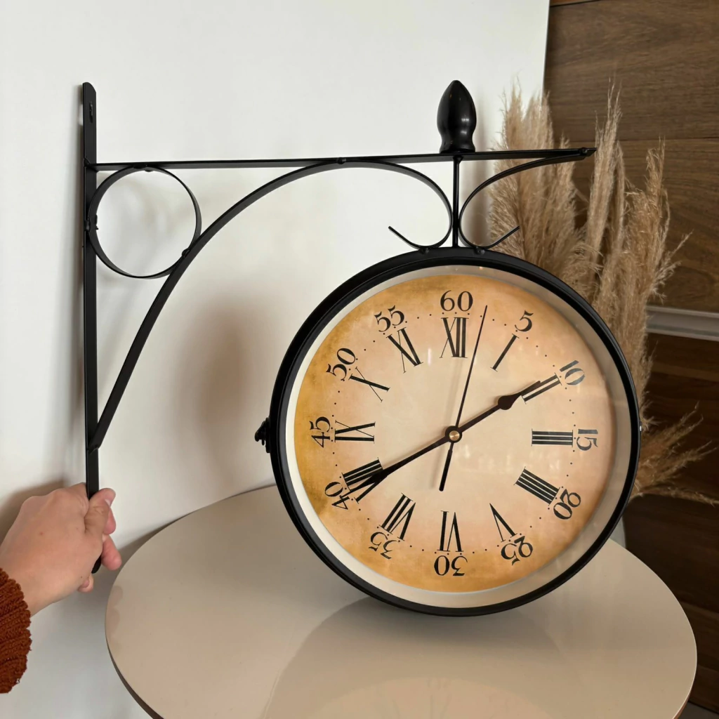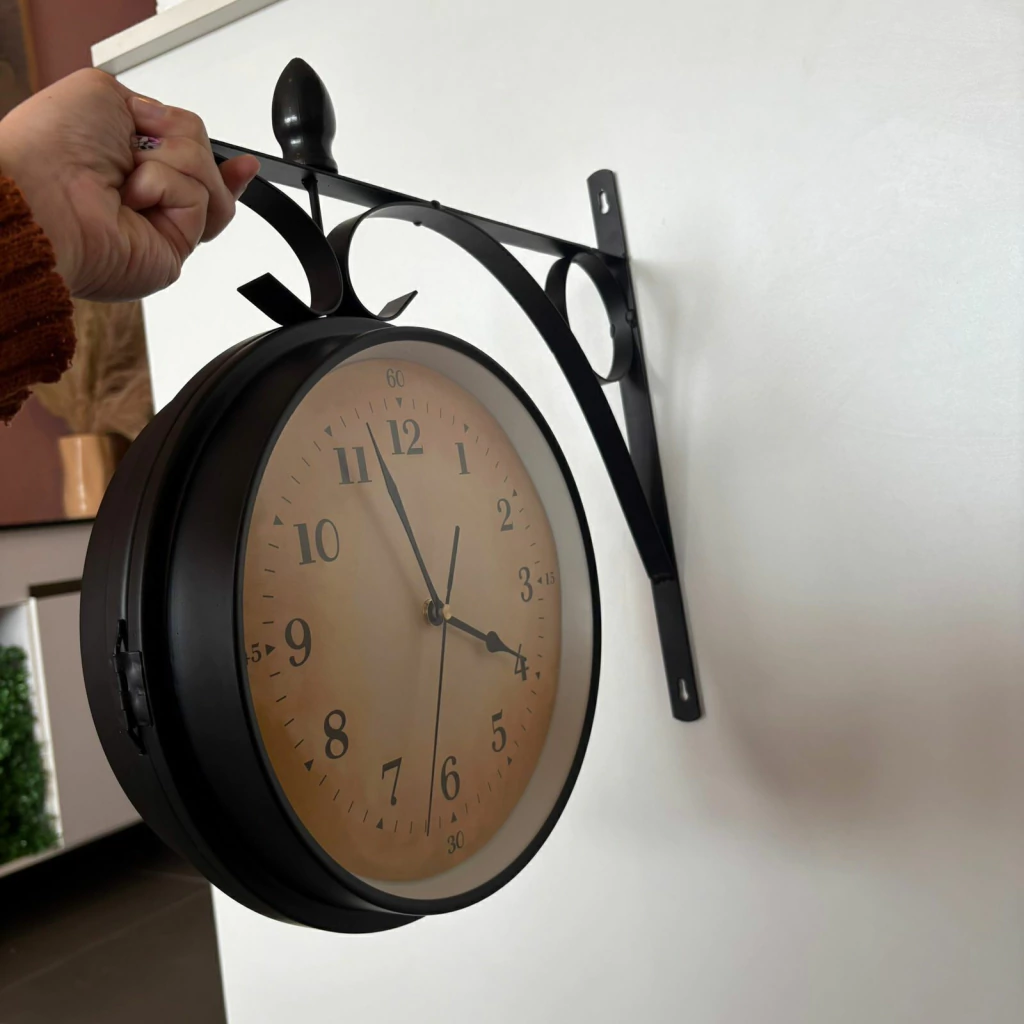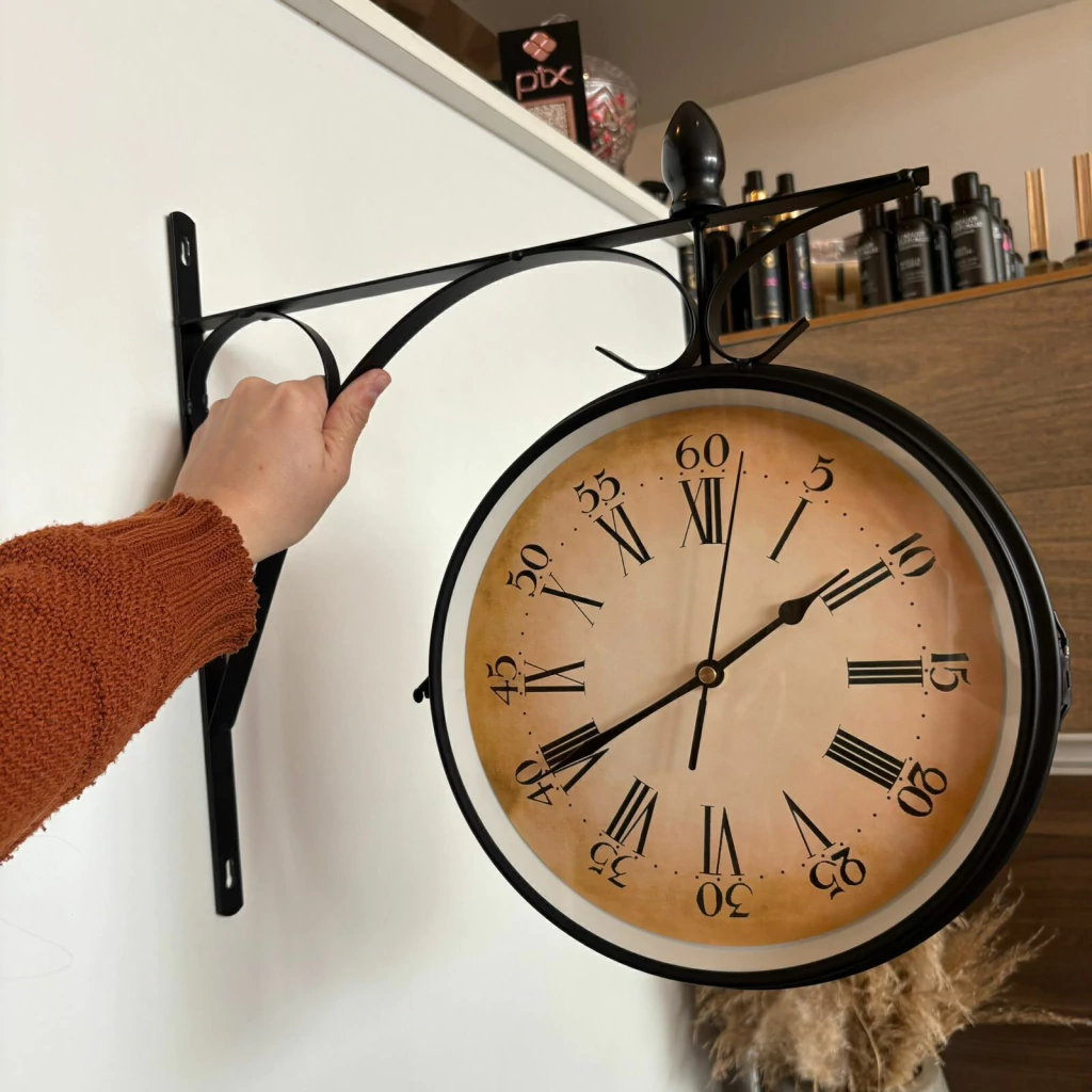 Inspirado nos clássicos relógios de estações ferroviárias, o Relógio de Parede Estação com Suporte é uma peça atemporal que combina elegância vintage com funcionalidade. Com estrutura em metal resistente, ele possui visor duplo, permitindo a visualização da hora de ambos os lados — perfeito para corredores, varandas cobertas, áreas gourmet ou halls de entrada.