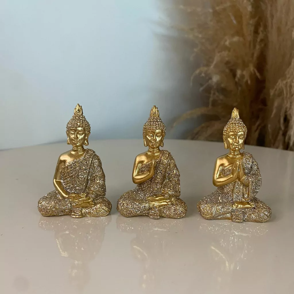 Delicadeza e significado em cada detalhe. O Trio de Budas em Resina – 7cm é ideal para quem busca uma decoração simbólica, porém discreta e charmosa.