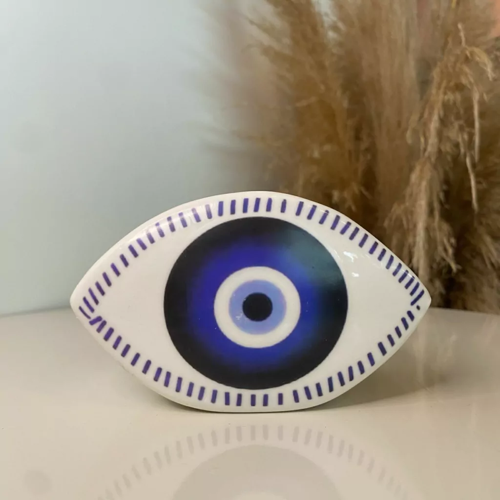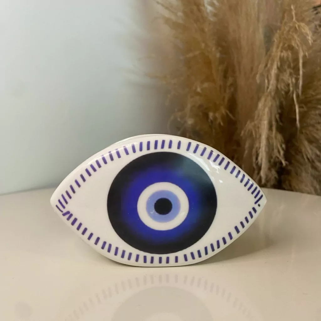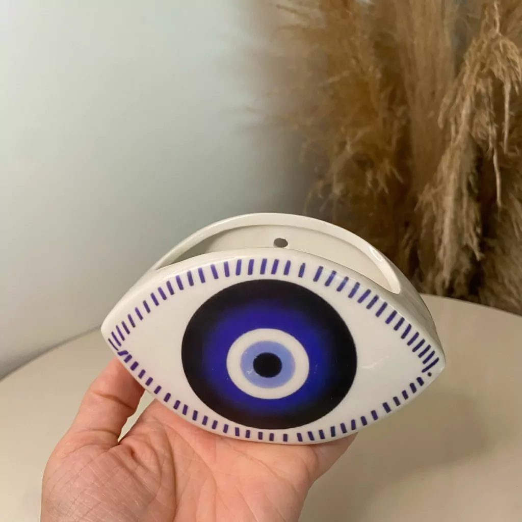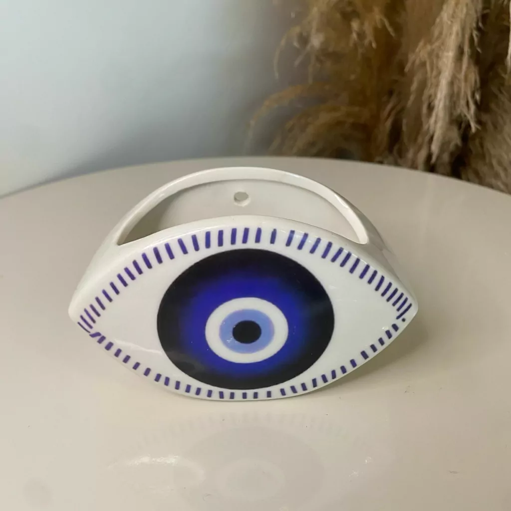 Transforme seu espaço com o Vaso Olho Grego em Porcelana. Com suas dimensões de 12x7cm, este vaso é perfeito para adicionar um toque de estilo e proteção ao seu ambiente.